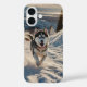 A majestic husky dashes through a winter wonderland, full of energy and grace.
