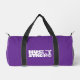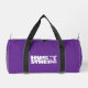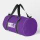 This small size duffel bag is shown in a solid colour of purple with black accents.