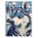 Colourful graphic art design of a husky at a tropical beach with palms. Awesome gift for Husky owner and Husky lover.