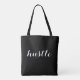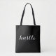 Tote bag with Hustle text.