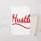 The word "hustle" in red with drop shadows in black.