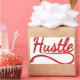The word "hustle" in red with drop shadows in black.