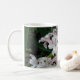 This pretty mug features a beautiful close-up photo of a group of beautiful white Hyacinth flowers. Each flower is white on the inside and tinged with a pretty pale pink colour on the outside. The design is shown here on a basic white coffee mug, but is also available on a range of different colours and styles of mugs, including a beautiful frosted glass mug.