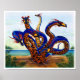 A many headed water snake whose head would grow back again if it was lopped off. The Hydra of myth was a dragon eventually slain by Hercules. This one is blue and gold with a spotted belly. We see it emerging onto the beach looking for trouble.