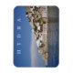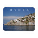 A beautiful view of the island of Hydra in Greece printed on a souvenir fridge magnet.