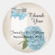 Chic wedding favour stickers, done in an antique ivory, with graphics of a mason jar and a blue hydrangea bloom. Personalise the black text for your special day. Great on your wedding favours. Matching products available.
