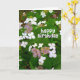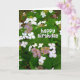 A birthday card design with a photo of one of the less common types of Hydrangea, Hydrangea Aspera which has these wonderful almost cartoon like flowers. Happy birthday is written in a kind of cartoon style font subtly shaded to match the colors of the flowers.