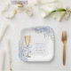 Elegant floral bridal shower paper plates, featuring a pastel blue delicate hydrangea floral arrangement and elegant typography.