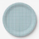 Hydrangea Blue Gingham Check Plaid Pattern Paper Plate