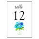Hydrangea Blue Watercolor Floral Wedding Table Number