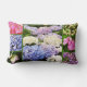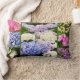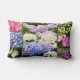 Hydrangea Collage Lumbar Pillow - Decorative Hydrangea flowers in assorted colours laid out in a collage format. Beautiful blues, whites; pink and purples trimmed in green, makes for a gorgeous garden themed pillow for year round use. The hydrangea flowers are on both sides of the pillow.