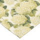 Cotton tablecloth is shown in a lovely white hydrangea flowers with a hint of yellow to them print.