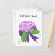 A pretty purple hydrangea with a purple bow and crisp green leaves.