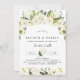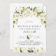 This elegant Bridal Shower Invitation features hand-painted watercolor white florals, hydrangea and beautiful greenery.