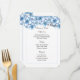 Menu Card shown on basic paper in White in the ticket style shape with a hydrangeas photo print. Script and standard text in Black.