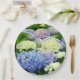 Hydrangea Mix- A beautiful display of soft pastel hydrangea flowers. Pink, white and blue hydrangeas gather in mass. This floral plate is suitable for special occasions and holidays year round. Feel free to personalise your hydrangea plates with text if you like. Get this same floral design on coordinating paper napkins as well. Two sizes of paper plates are available.
