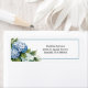 This return address label is shown in basic white with a lovely blue hydrangea art print.