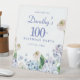 A beautiful welcome sign with the Wow factor that will impress your guests. Soft dusty blue and purple hydrangeas mix with soft blush white and pink wild roses. The birthday celebrant's name is written in an easy-to-read script font. the Birthday year and date follow in a bold traditional serif font. All of the text is editable so you can customise your welcome.