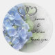 Beautiful blue Hydrangea Stickers with silver hearts and names for wedding favours. Image ans illustration composition for beautiful wedding favour stickers or seals for envelopes. Customise the name and message to suit your needs.