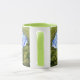 East to order, shipped with speed. Now for the good stuff, it's has crisp beautiful colors and it makes me smile when I drink from it. I constantly wash this one mug so I will have it for the next morning. Everyone needs something of beauty in the morning to start it out right. My printing was "Good morning Jesus. I wish there was some way to order the printing in white so it would show up more, may there was and I didn't see it. I still enjoy the printing.