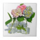 Classic rustic pink, blue, and green Hydrangeas in Mason jars