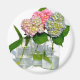 Classic elegant country core pink, blue, and green Hydrangeas in Mason jars