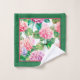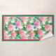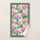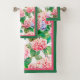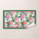 Beautiful pink and blue hydrangeas bordered with hot pink and green, this bathroom towel set is a perfect accent to your home decor.