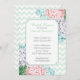 Pretty bridal shower invitation with trendy hydrangeas and chevron pattern. Graphics of pale mint green and white chevron pattern, decorates the background of the invitation, with pastel hydrangeas, in the upper right and bottom left corners. A green notched edge white text area, in the middle, has custom text ready to personalise.
