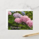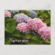 Elegant hydrangea blooms in pinks, mauve and soft blue colours accent this postcard. A beautiful postcard for a friend or for your own collection.