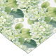 Table runner to accent your table decor is shown in a lovely green-white hydrangea print.