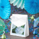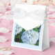 Wedding favour box shown in white with a photo print of pretty hydrangeas and with a white ribbon bow. Customise this item or buy as is.