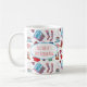 This hot cocoa design, a tribute to warm and cosy winter days and nights, is great for kids and adults. It celebrates all the comforts of home in the winter: tea kettles, stockings, blankets, and mugs. I drew them all by hand and painted the designs by hand, too. This retro Scandinavian folk art-style mug is fun for your Christmas drinks or any time when it's cool out and you need that warm-up. -- Mary Kunz Goldman, artist