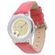 I had two concerns when ordering this watch - one that the watchband didn't look that glittery and two that the dial would be too large. Neither was a problem at all. The watch band is nice and glittery for a touch of bling. As to the size, I have small bones so I tend to like smaller looking accessories and I am quite comfortable with this. Neither too large or too small. The outside edge to edge on the dial is 1 1/4" the inside image is 1 inch.
