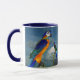 Vibrant,unique and artistic 3D tropical macaws with colourful feathers in blue, green,orange,yellow colours in wild nature under the blue sky and white clouds created by Bulgan Lumini (c).