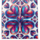 Shiny, fat, plastic 3D hearts in blue, orange, red and purple.