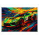 A hyper-stylized racing car built for speed and spectacle—featuring neon-glow wheels, shifting metallic paint, and aerodynamic curves that slice through dusk-lit motion.