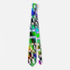 Colourful abstract digital art suggests the glossy chequered pattern of kitchen or, yes, bathroom tile. Blue, green, yellow, and white, with touches of purple and red.