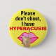 If you suffer from hyperacusis you will know that it can be very debilitating and noise can vibrate through your head. I am deaf in one ear, and also suffer from hyperacusis, this can be very confusing for some people because they think they need to be louder around a deaf person, (which is not the case!) I find this badge and a pair of noise cancelling earphones help a lot.