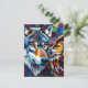 Keep in touch with this colourful vibrant postcard. A vibrant colourful ai illustration of a wolf and an owl in a mosaic stained glass effect.