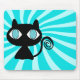 Black kitten having a trippy time in a teal and light blue spiral outer space. Great gift for cat lovers.