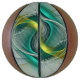 Hypnotic Abstract Golden Turquoise Teal Fractal Basketball