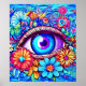 Mesmerising digital art featuring a vibrant eye surrounded by colourful flowers and abstract patterns (This Design Made With AI). Place Order Today and Embrace the Joy of Shopping!