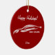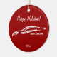 Hyundai Genesis Coupe white Brushstroke with personalised Greetings Xmas Ornament. Red background.