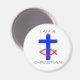 3" round circle magnet with cross and Christian (ichthus) fish that says "I Am A Christian".