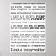 A manifesto for copywriters. Get one for your freelance office, studio or lounge to remind everyone what it means to be a copywriter. Also makes a great gift for the copywriter in your life.