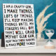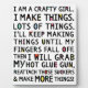 This plaque features text written and typography design by Kathy R. Jeffords, who is admittedly a crafty girl but has never reattached any body parts with a glue gun.  It'd make the perfect gift for that crafty girl you know and love...or the perfect addition for your very own craft room, art studio, or sewing area!  Eye-catching in mostly black and white with pops of lots of colours, it'll add a touch of cheer to any room (and likely smiles to faces!)