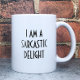 Bold and cheeky coffee mug with the phrase I Am a Sarcastic Delight in a playful font. Perfect for anyone who loves sarcasm, dry humour, and a good caffeine kick. A fun gift for friends, coworkers, or anyone who can’t resist a sassy statement piece in their morning routine.
