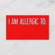 "I AM ALLERGIC TO" CALLING CARD