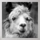 A beautiful black and white llama in a windy day