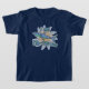 This super cute shark apparel has a stuffed animal Great White Shark (in blue), covered in colourful patches as he swims not-so-menacingly around. The blue print reads, "I am Fin-tastic!" Funny shark clothing for children.